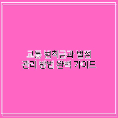 교통 범칙금과 벌점은 모든 운전자가 알아야 할 중요한 요소입니다. 주기적으로 자신의 벌점을 확인하고, 필요한 경우 적절한 조치를 취함으로써 안전한 도로를 만들어 나가야 해요. 벌점 관리는 운전자의 책임이자 의무입니다. 이 정보를 통해 면허 정지 걱정 없이 안전하게 운전해 보세요. 운전 습관 개선을 통해 더 안전한 도로 환경을 함께 만들어 나가길 바랍니다!