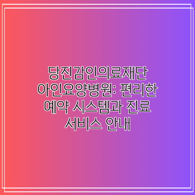 당진감인의료재단 아인요양병원: 편리한 예약 시스템과 진료 서비스 안내